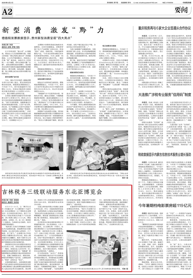 作为我国高铁“金名片”的缔造者、吉林省纳税百强企业中车长春轨道客车股份有限公司,多次参加东北亚博览会。公司财务总监徐汝君表示,主管税务部门长春市绿园区税务局牵头组建多部门联动服务团队,通过政策宣讲、风险提示、问需解难等组合服务,为企业送上定制化“税务套餐”。“从研发费用加计扣除风险预警,到固定资产加速折旧新政应用,税务干部的讲解既专业又接地气。”徐汝君说。